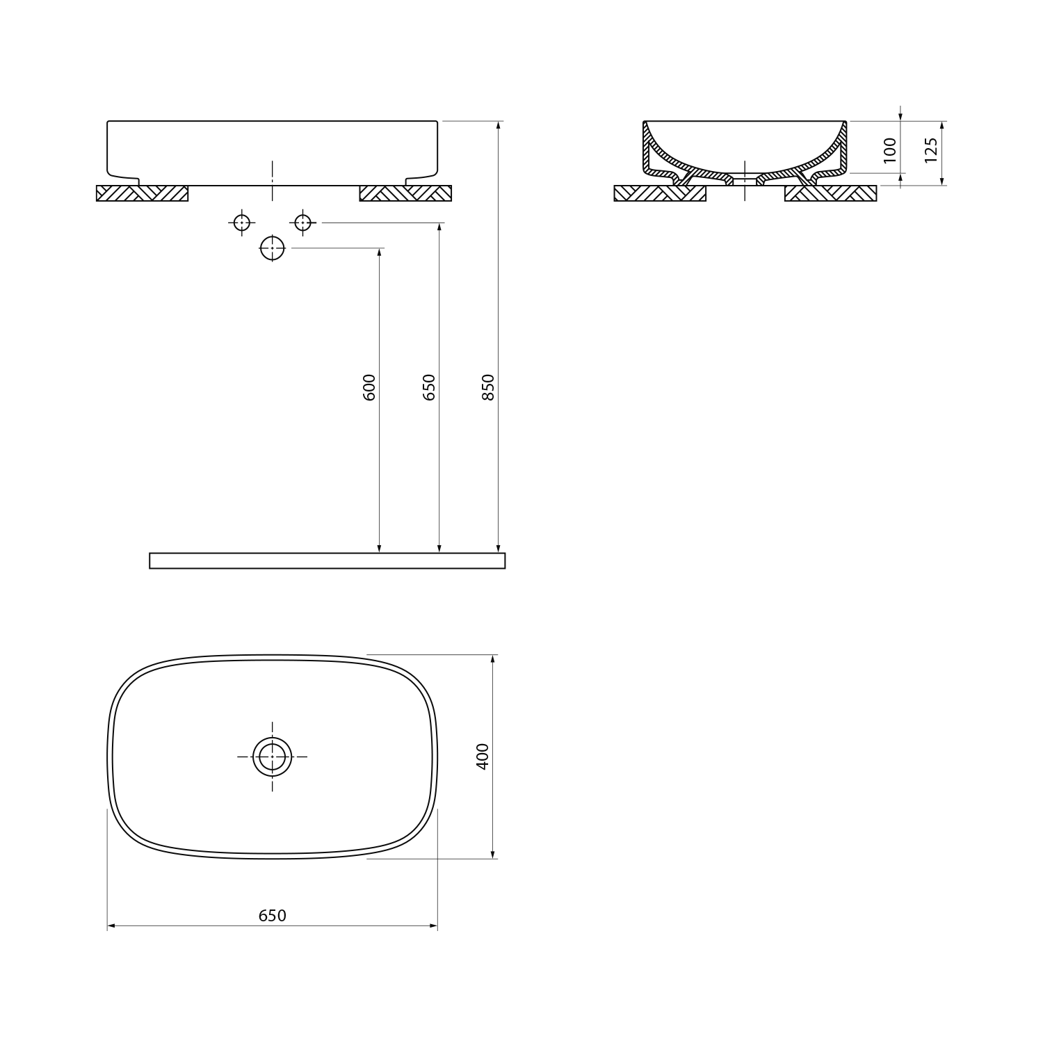 | Typ umyvadla | Umyvadlo na desku | |