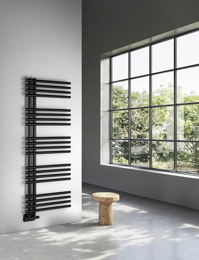 Klasické trubky s kruhovým profilem sestavené v designový radiátor, který lze díky středovému připojení s roztečí 50 mm kombinovat s designovými ventily z naší nabídky.