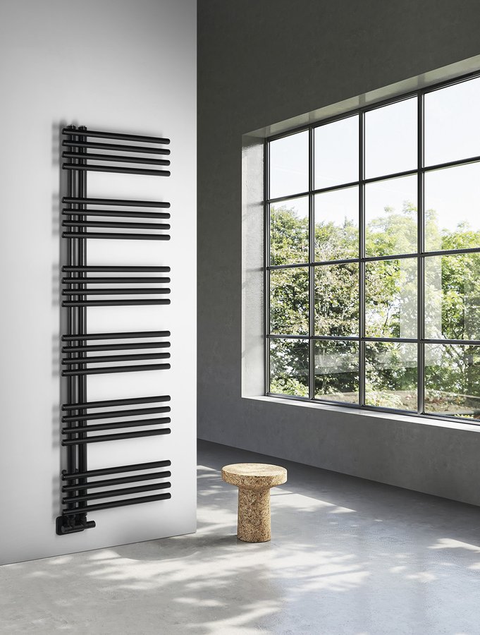Klasické trubky s kruhovým profilem sestavené v designový radiátor, který lze díky středovému připojení s roztečí 50 mm kombinovat s designovými ventily z naší nabídky.