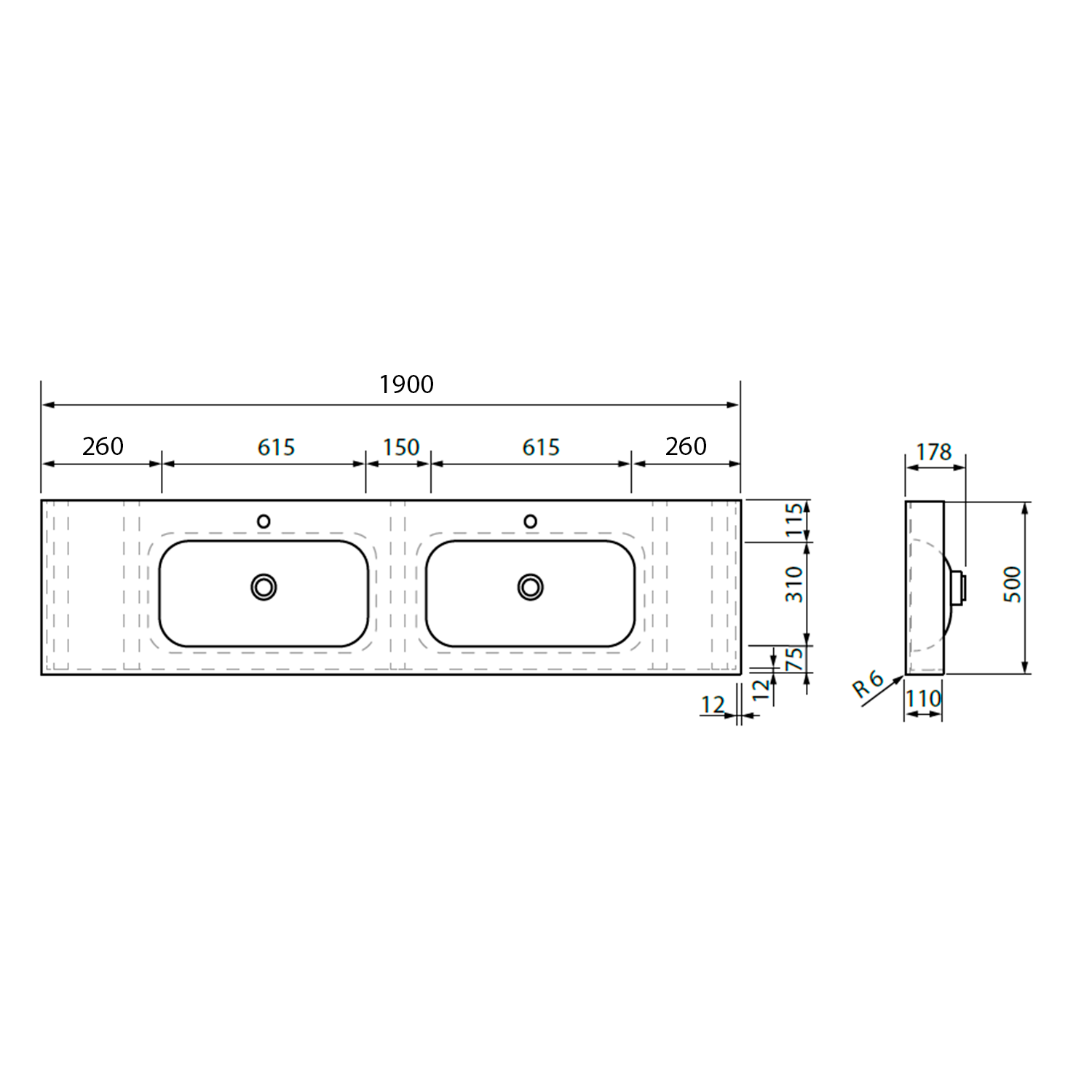 EMICO dvojumyvadlo, Rockstone, 190x50cm, límec L, bílá mat