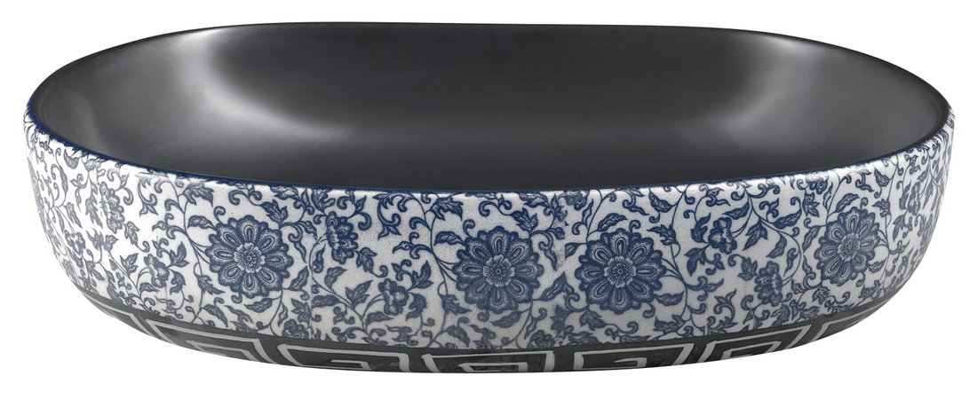 PRIORI keramické umyvadlo na desku, 60x40 cm, černá s modrým vzorem II. jakost