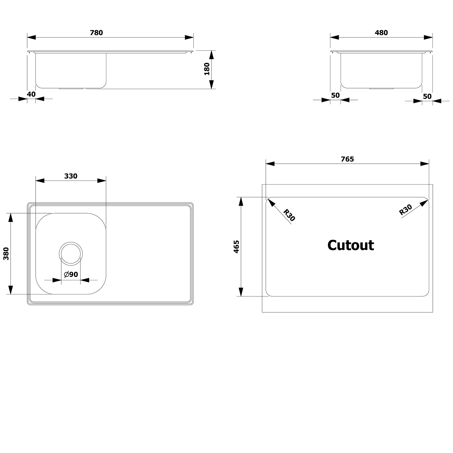 Nerezový vestavný dřez 78x18x48 cm II. jakost