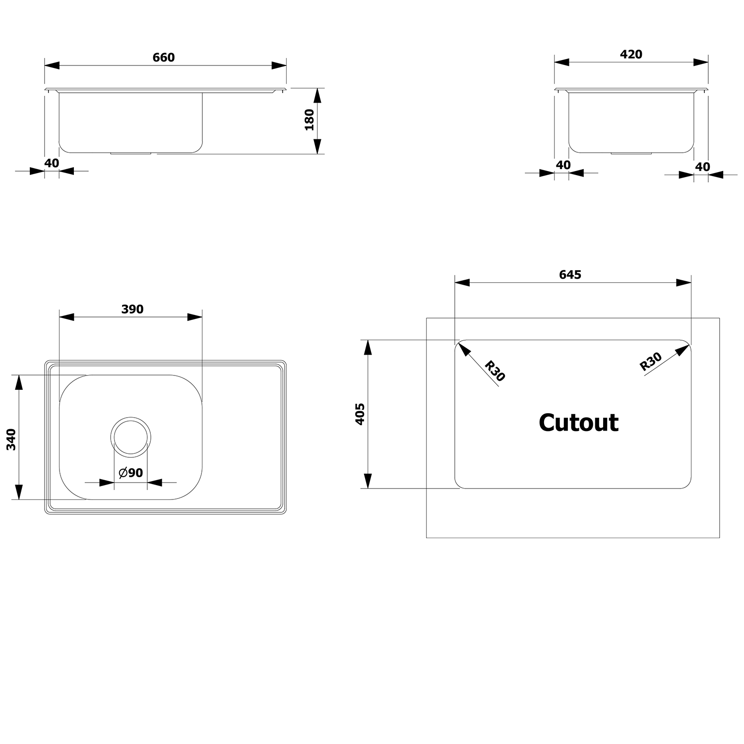 Nerezový vestavný dřez 66x18x42 cm II. jakost