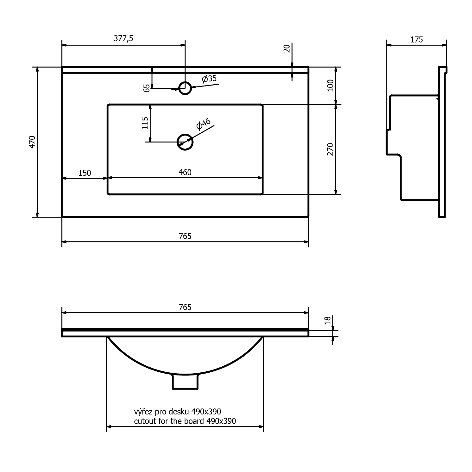 SLIM keramické umyvadlo, nábytkové, 76x46 cm, bílá II. jakost