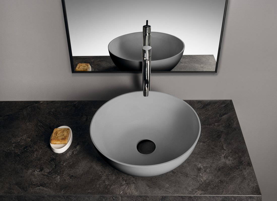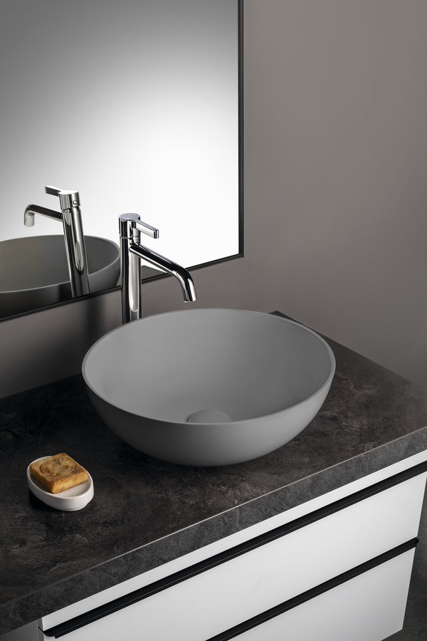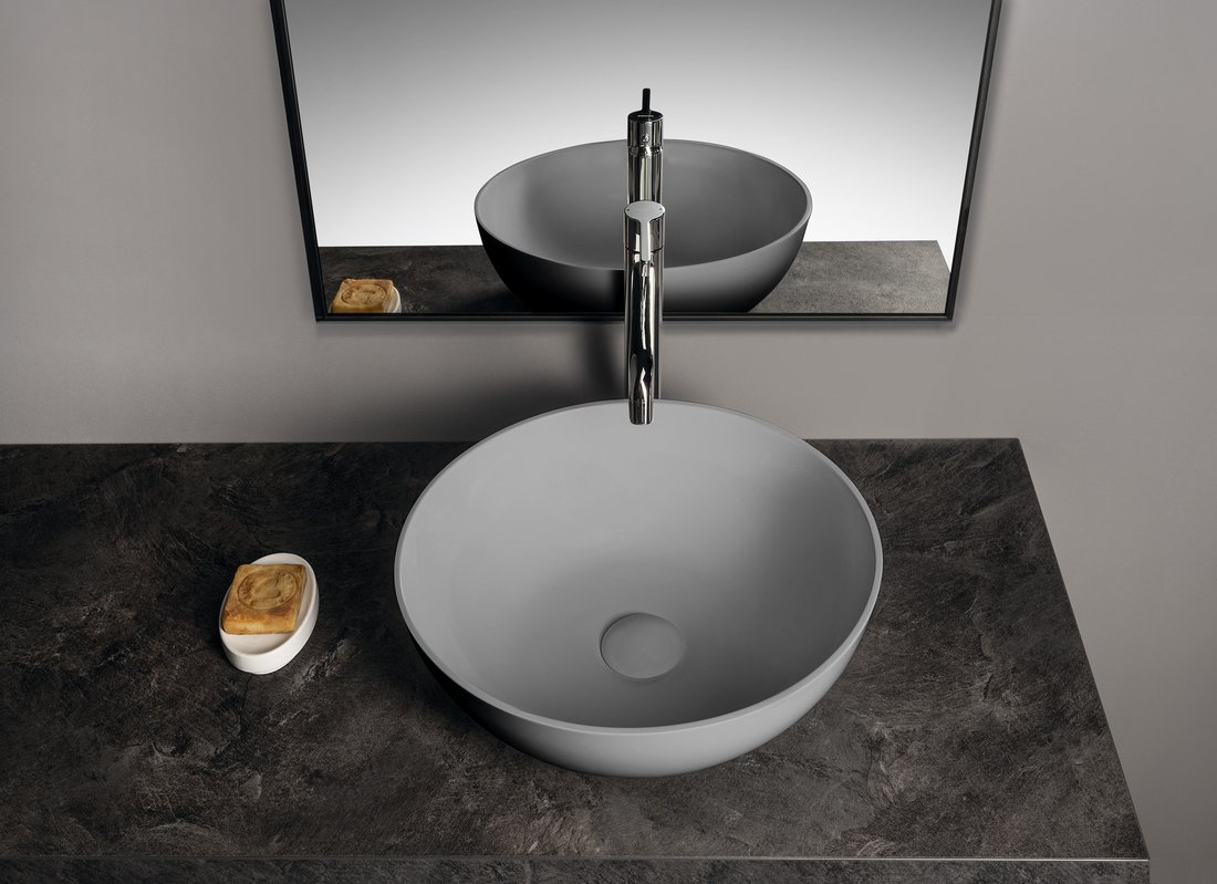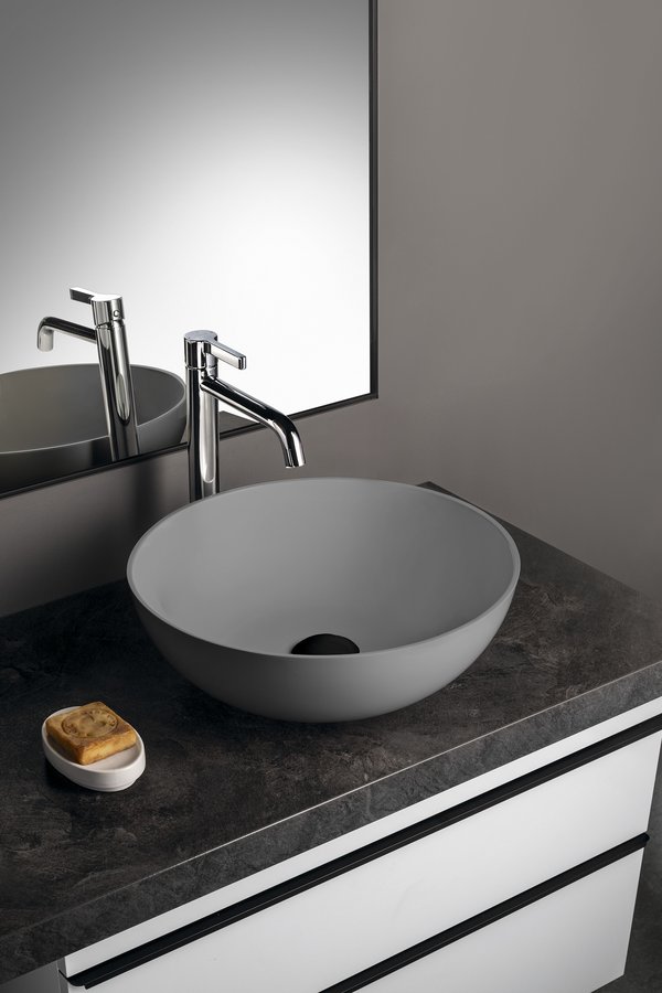 BANERA ROUND umyvadlo na desku, litý mramor, průměr 39cm, šedá mat