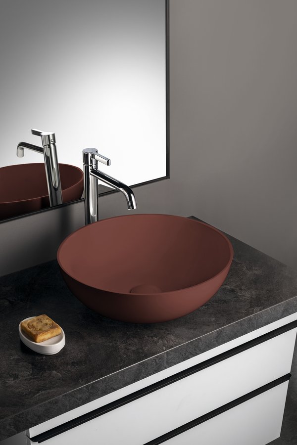 BANERA ROUND umyvadlo na desku, litý mramor, průměr 39cm, hnědá mat