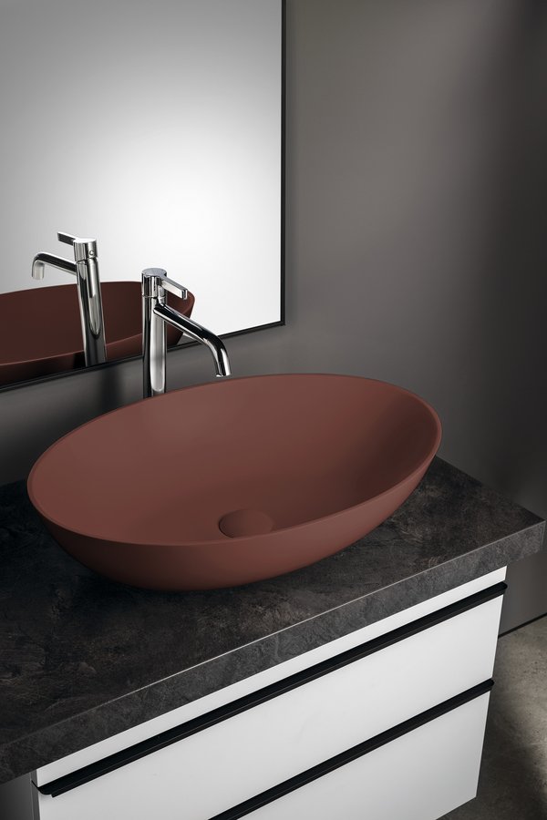 BANERA OVAL umyvadlo na desku, litý mramor, 60x40cm, antracit mat