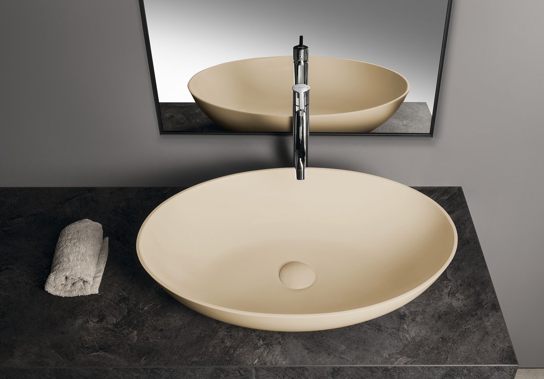 BANERA OVAL umyvadlo na desku, litý mramor, 60x40cm, béžová mat