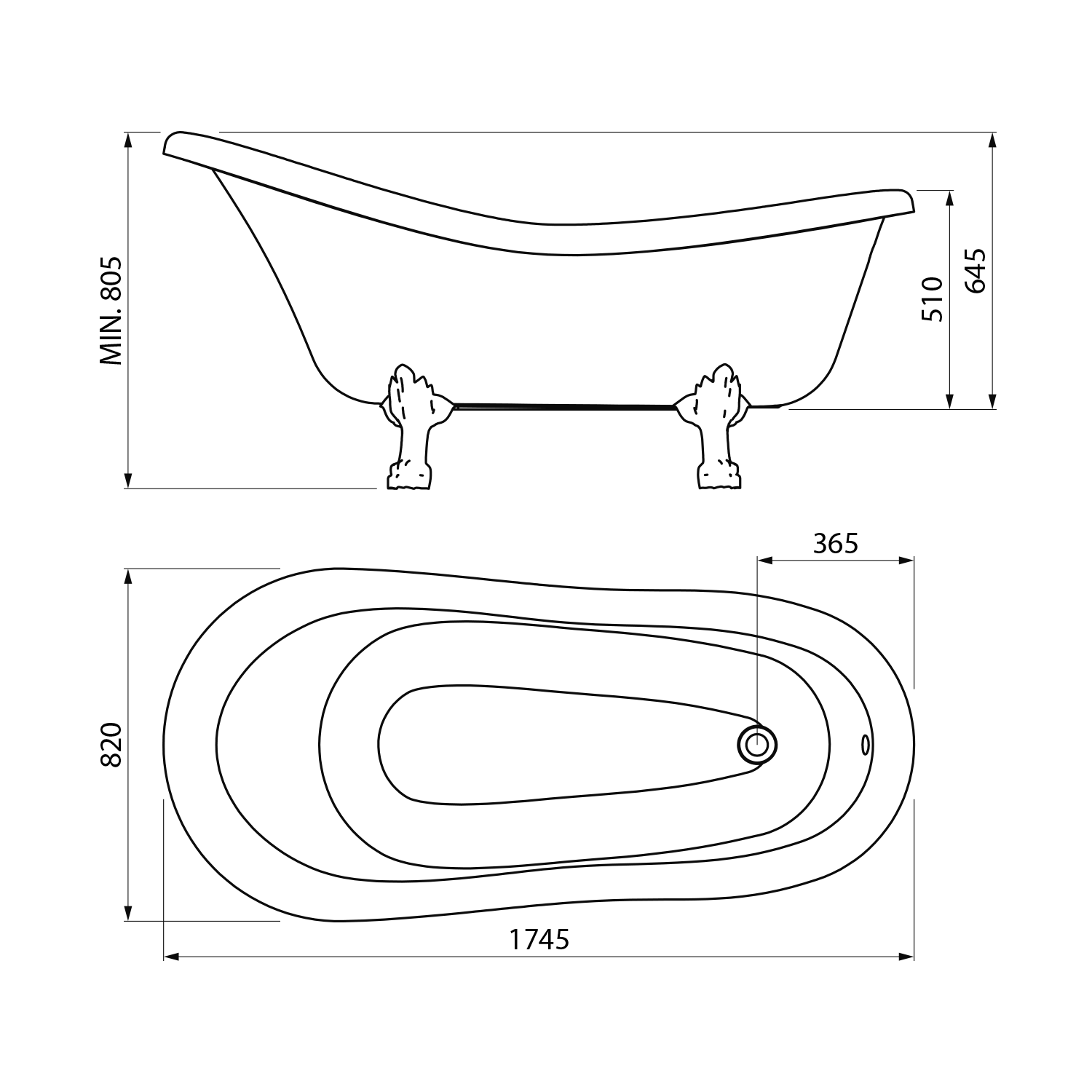 RETRO volně stojící vana 174,5x82x80,5cm, bílá, nohy chrom