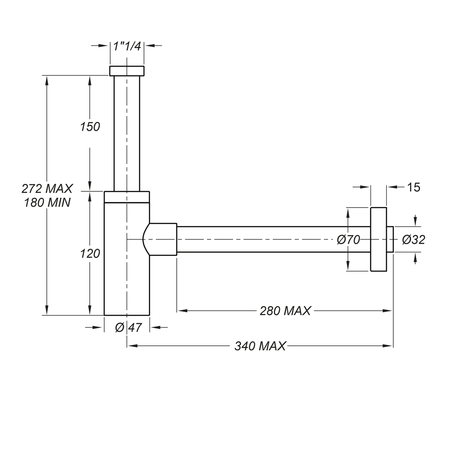 Umyvadlový sifon 5/4", odpad 32mm, kulatý, měď mat
