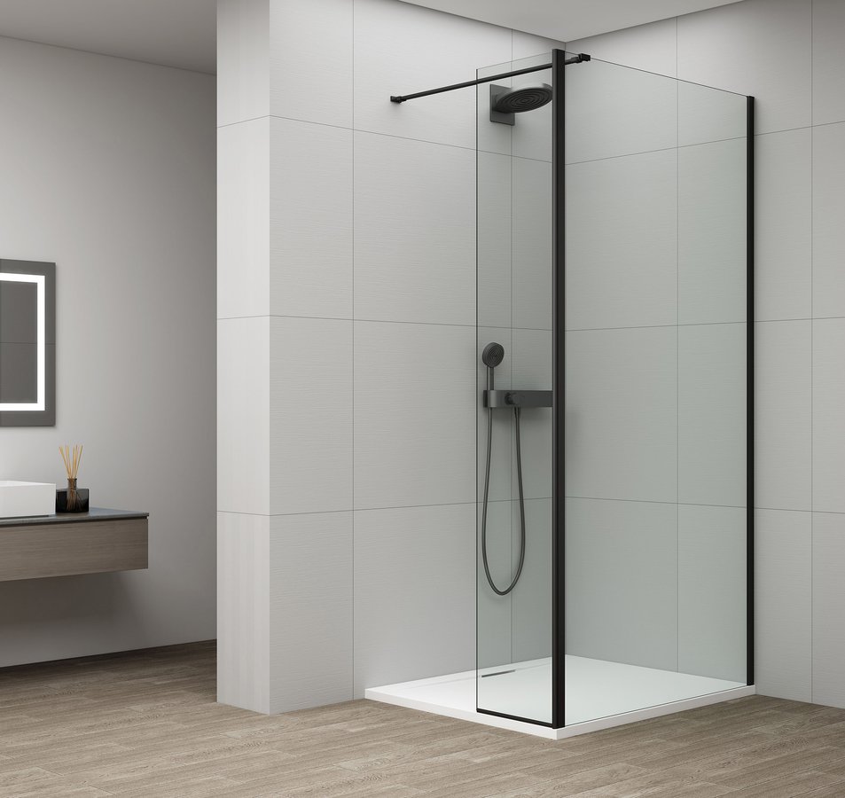 ESCA BLACK MATT Dusch-Glasteil, Glaselement 1000 mm, Klarglas, Drehtür-Montage 600 mm