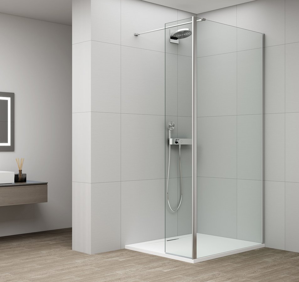 ESCA CHROME Dusch-Glasteil, Glaselement 700 mm, Klarglas, Drehtür-Montage 600 mm