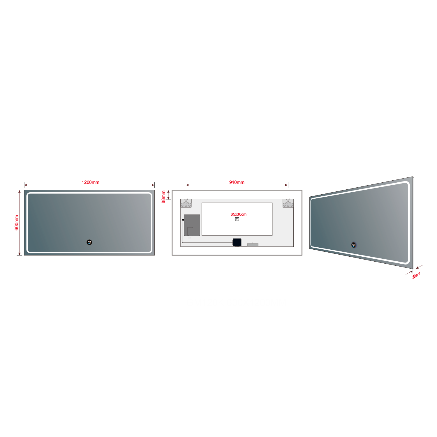 GEMINI Spiegel mit LED-Beleuchtung 120x60cm, smarte Funktionen