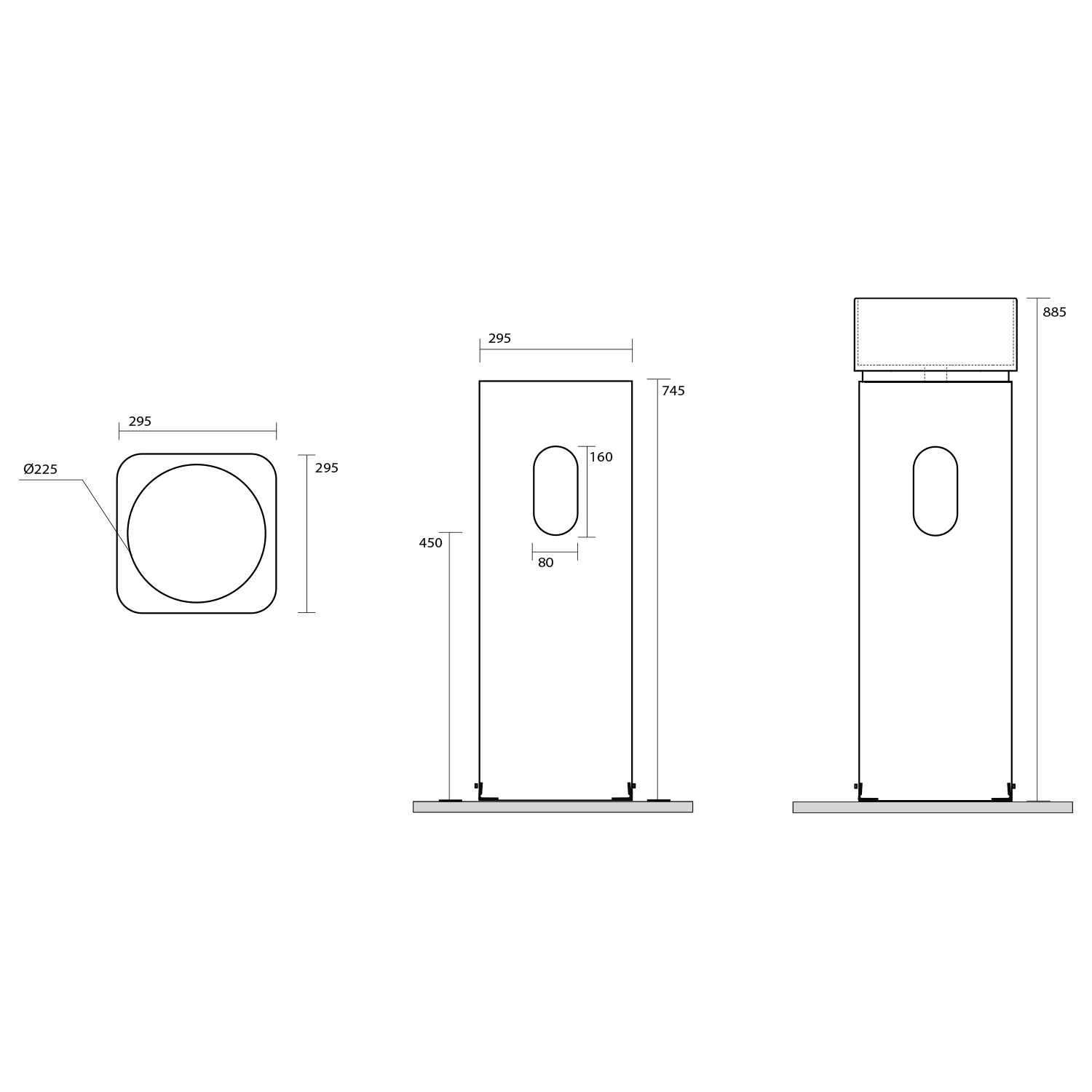 HAKO Keramik-Waschbecken an der Wand, 30x88.5x30cm, Schwarz matt