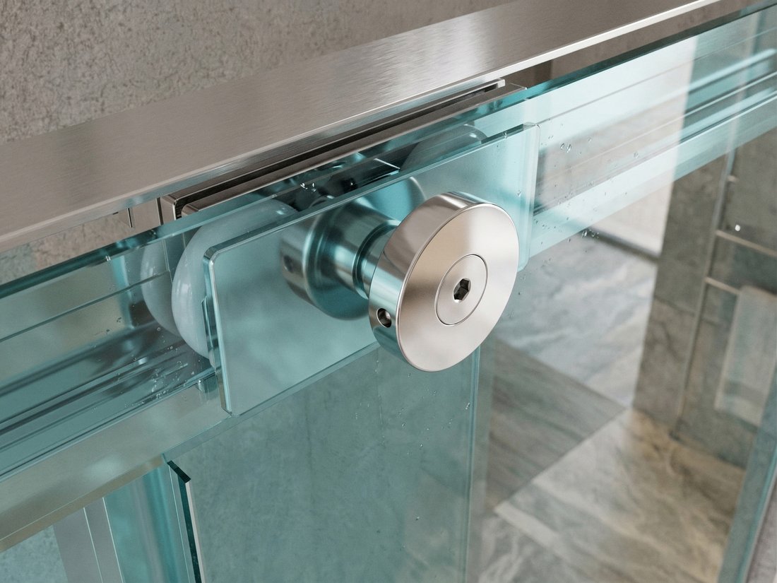 Der Schutz gegen Wasserüberlauf wird durch eine niedrige Einstiegleiste gewährleistet, die das saubere Aussehen der Duschabtrrennung vervollständigt. Rahmenlose Duschabtrennungen bilden so einen frischen und eleganten Eindruck.