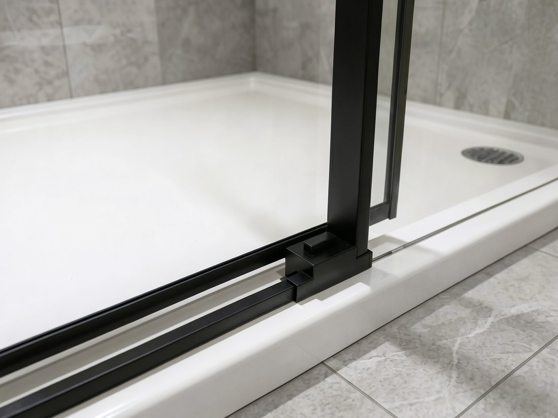 Der Schutz gegen Wasserüberlauf wird durch eine niedrige Einstiegleiste gewährleistet, die das saubere Aussehen der Duschabtrrennung vervollständigt. Rahmenlose Duschabtrennungen bilden so einen frischen und eleganten Eindruck.