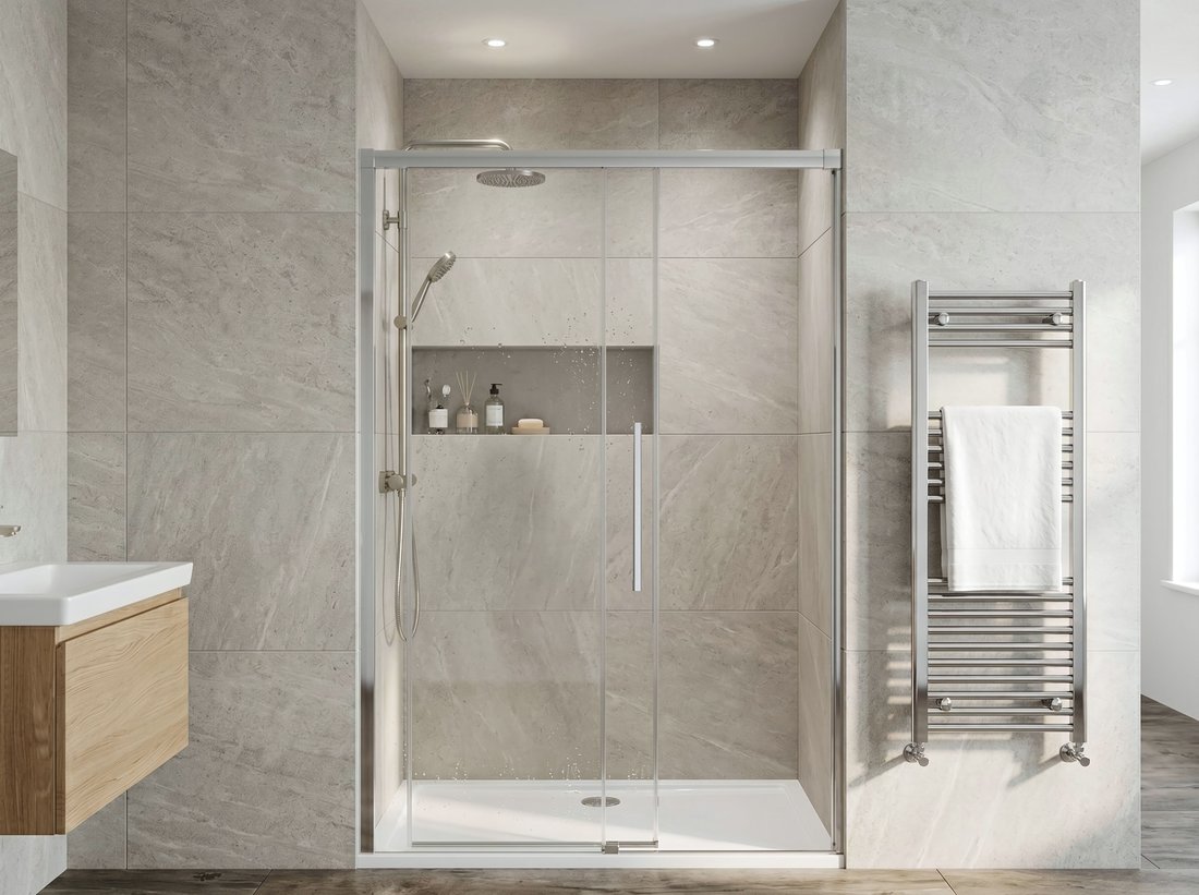 Der Schutz gegen Wasserüberlauf wird durch eine niedrige Einstiegleiste gewährleistet, die das saubere Aussehen der Duschabtrrennung vervollständigt. Rahmenlose Duschabtrennungen bilden so einen frischen und eleganten Eindruck.