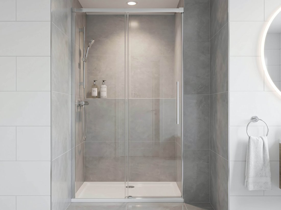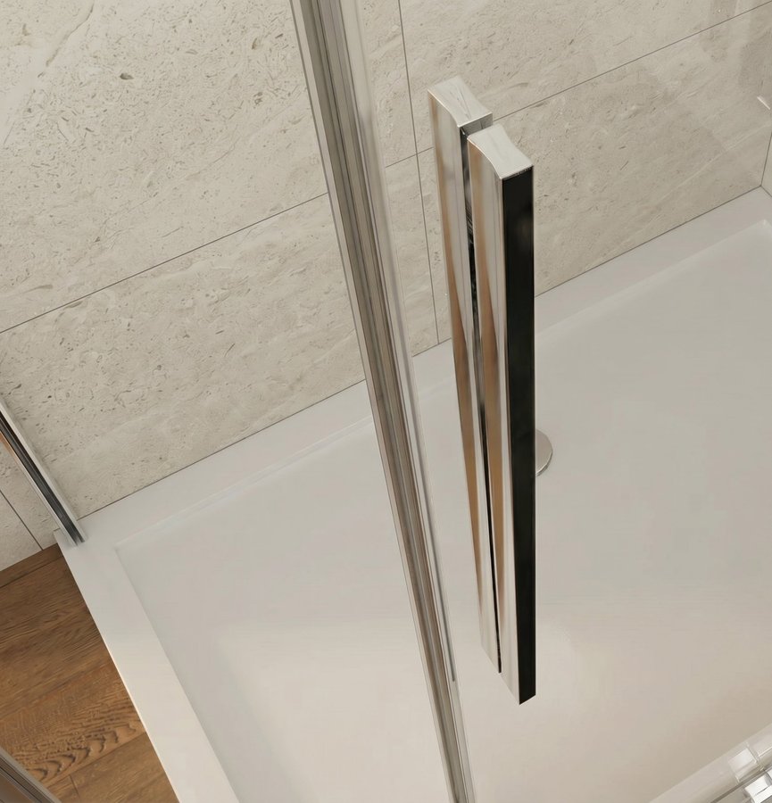 Der Schutz gegen Wasserüberlauf wird durch eine niedrige Einstiegleiste gewährleistet, die das saubere Aussehen der Duschabtrrennung vervollständigt. Rahmenlose Duschabtrennungen bilden so einen frischen und eleganten Eindruck.