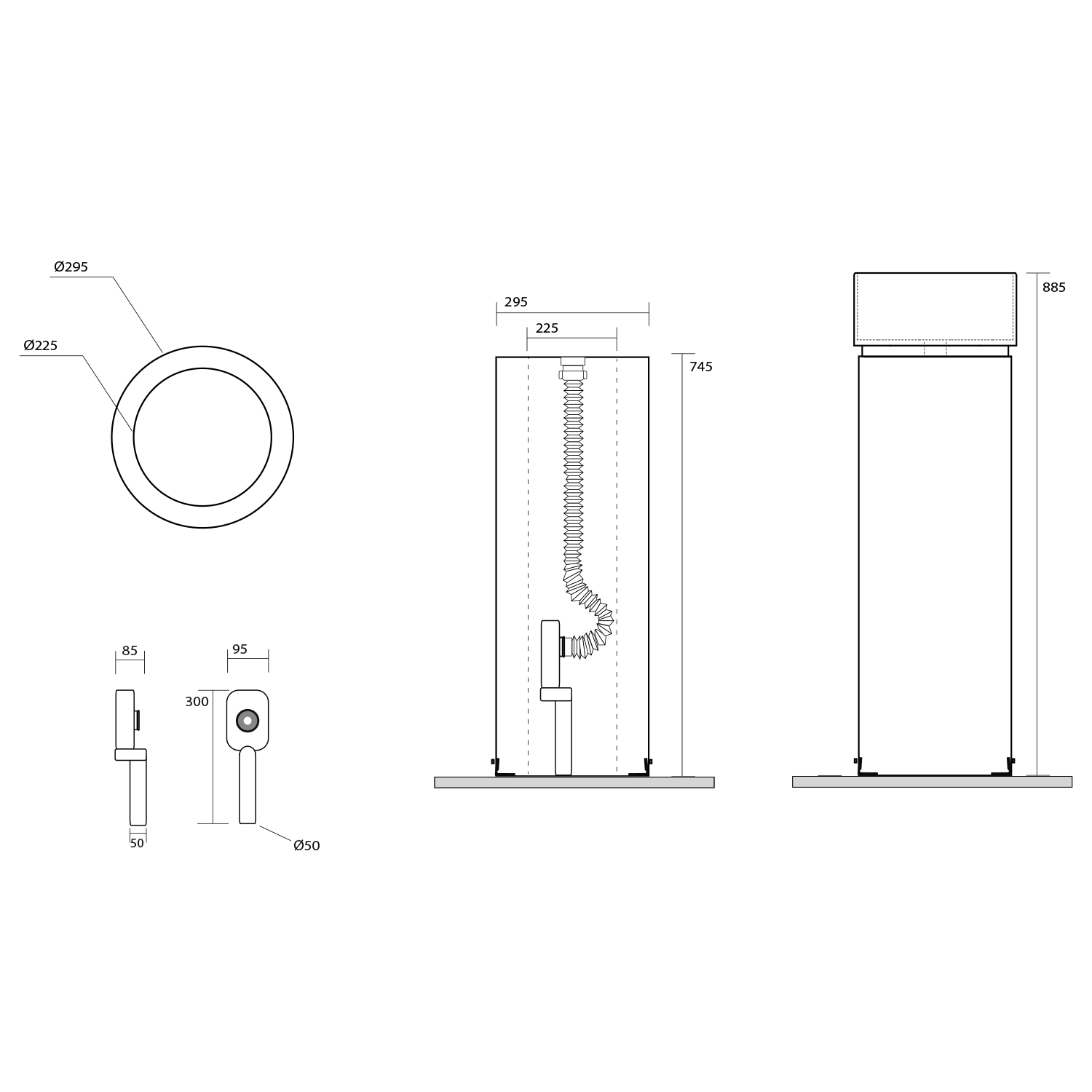 OKE Keramik-Waschbecken freistehend, Durch. 30x88.5cm, Schwarz matt