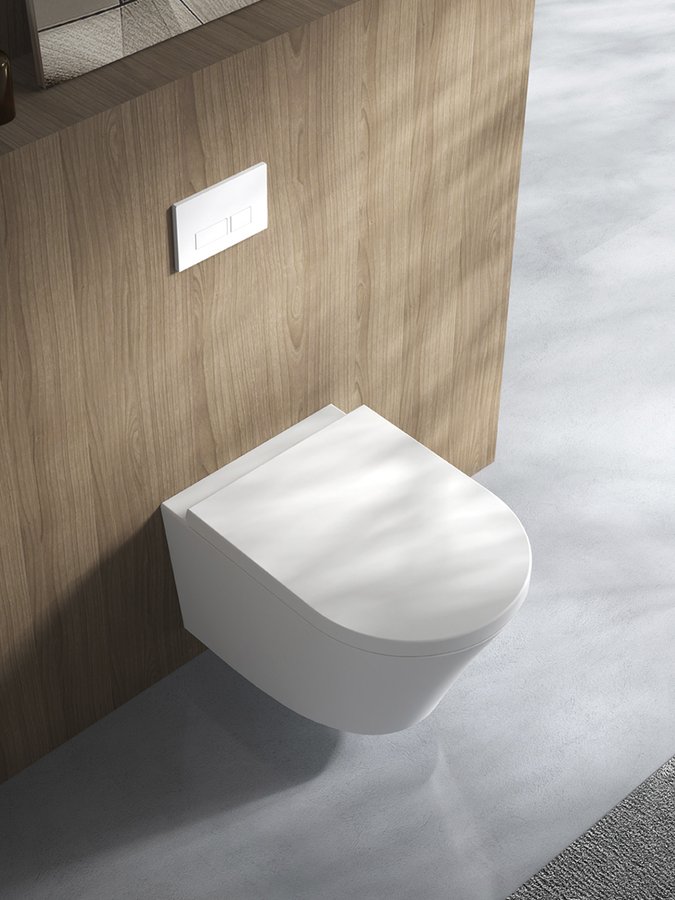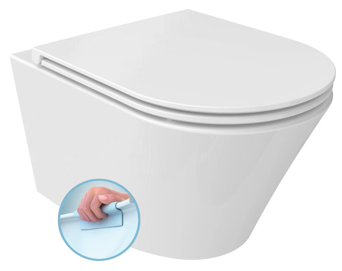 Rimless (NoRim) - Toiletten ohne herkömmlichen Spülrand. Glatte Oberfläche ohne Vertiefungen oder Falten. Das Spülwasser fließt nur von der Rückseite der Toilettenschüssel durch den Wasserverteiler und spült dank der speziellen Form der Keramik den Innenraum perfekt. Der Vorteil ist die einfache Wartung und Reinigung der Toilettenschüssel.