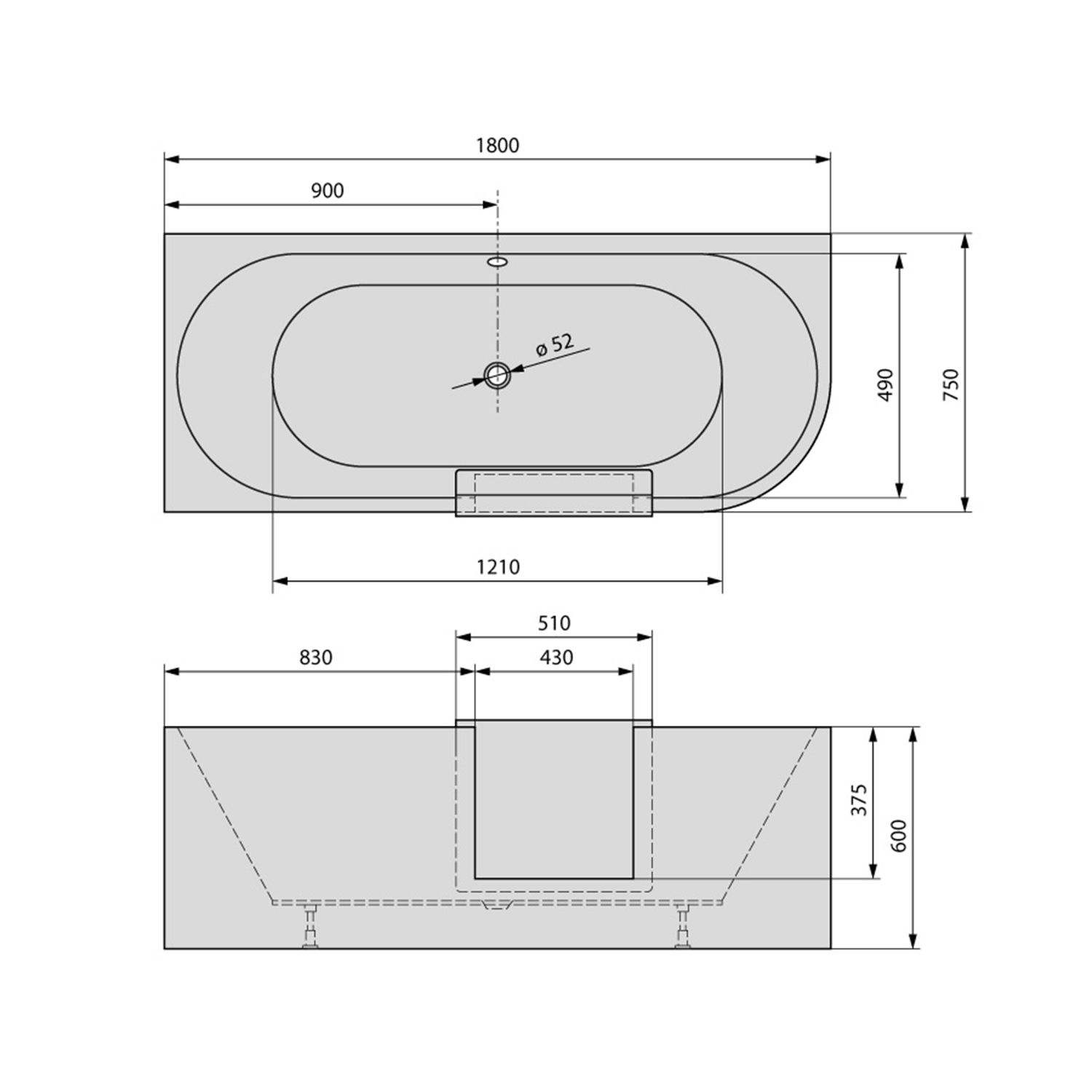 PORTAS R asymmetrische Badewanne 180x75x60cm, links, weiß