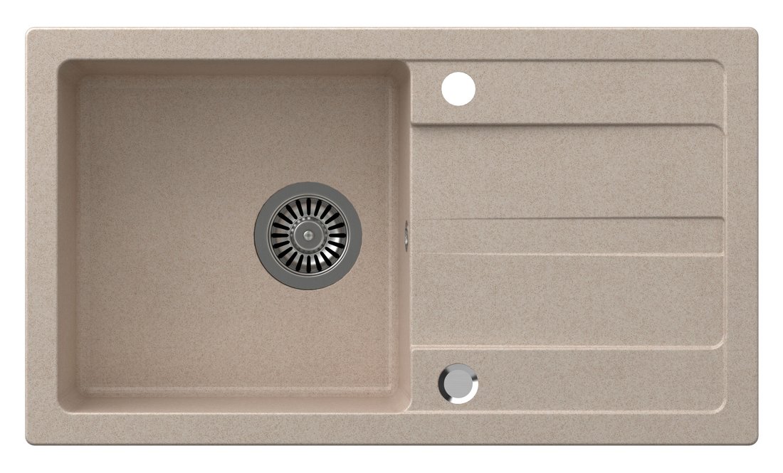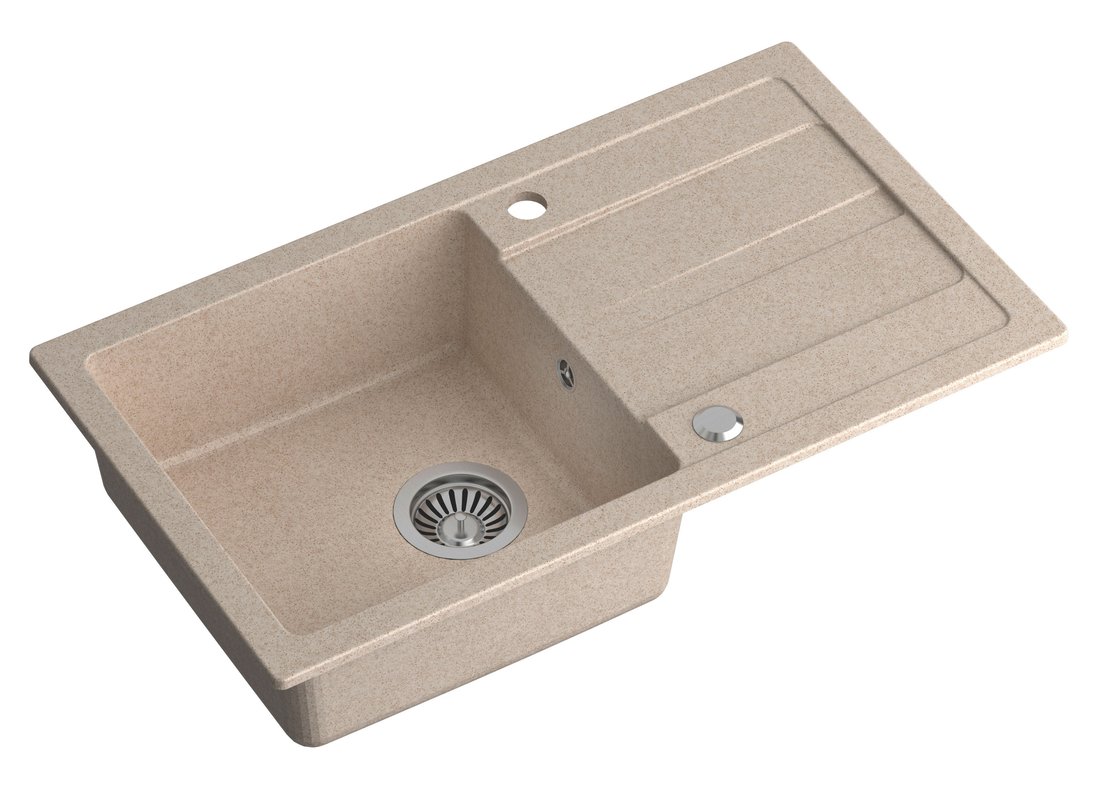 Einbau-Granitspüle mit Abtropffläche, 77x44cm, beige