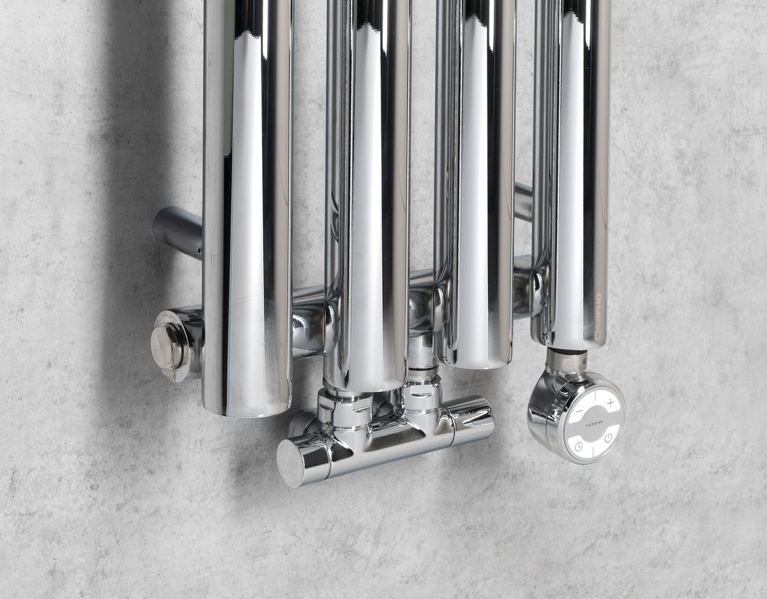 Bei einem Heizkörper mit Zentralanschluss hängt es davon ab, ob der Heizstab über ein Ventil angeschlossen werden kann (in diesem Fall wird ein Kombiventil verwendet) oder ob der Stab separat an das Seitenteil des Heizkörpers angeschlossen wird (mit einem herkömmlichen Ventil). Im Falle eines seitlichen Anschlusses wird immer ein Kombiventil verwendet. Es besteht die Wahl zwischen einem manuellen Ventil und einem Ventil mit Thermostatkopf.