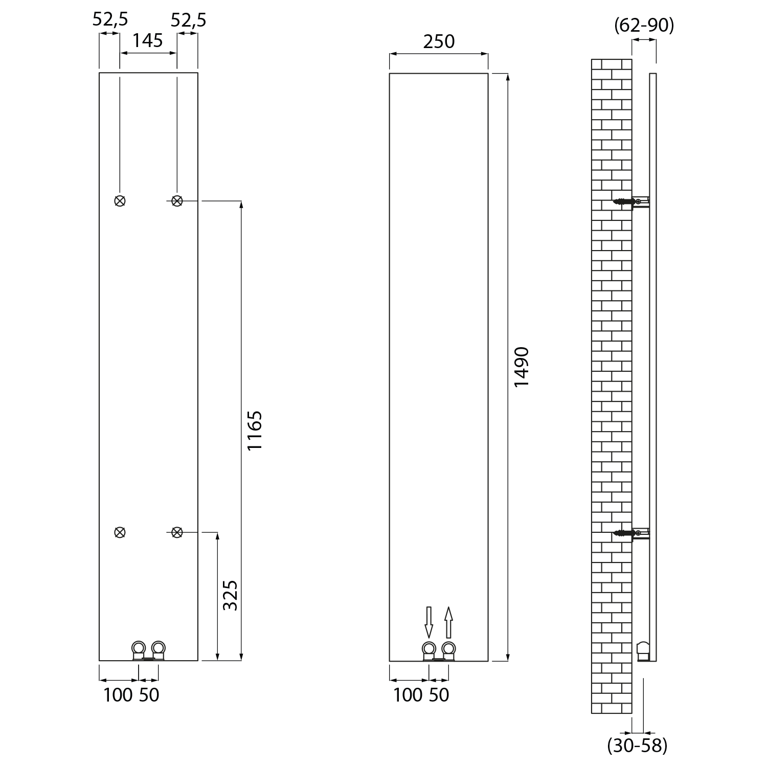 SMARTELLA Badheizkörper 250x1490mm, Schwarz mat