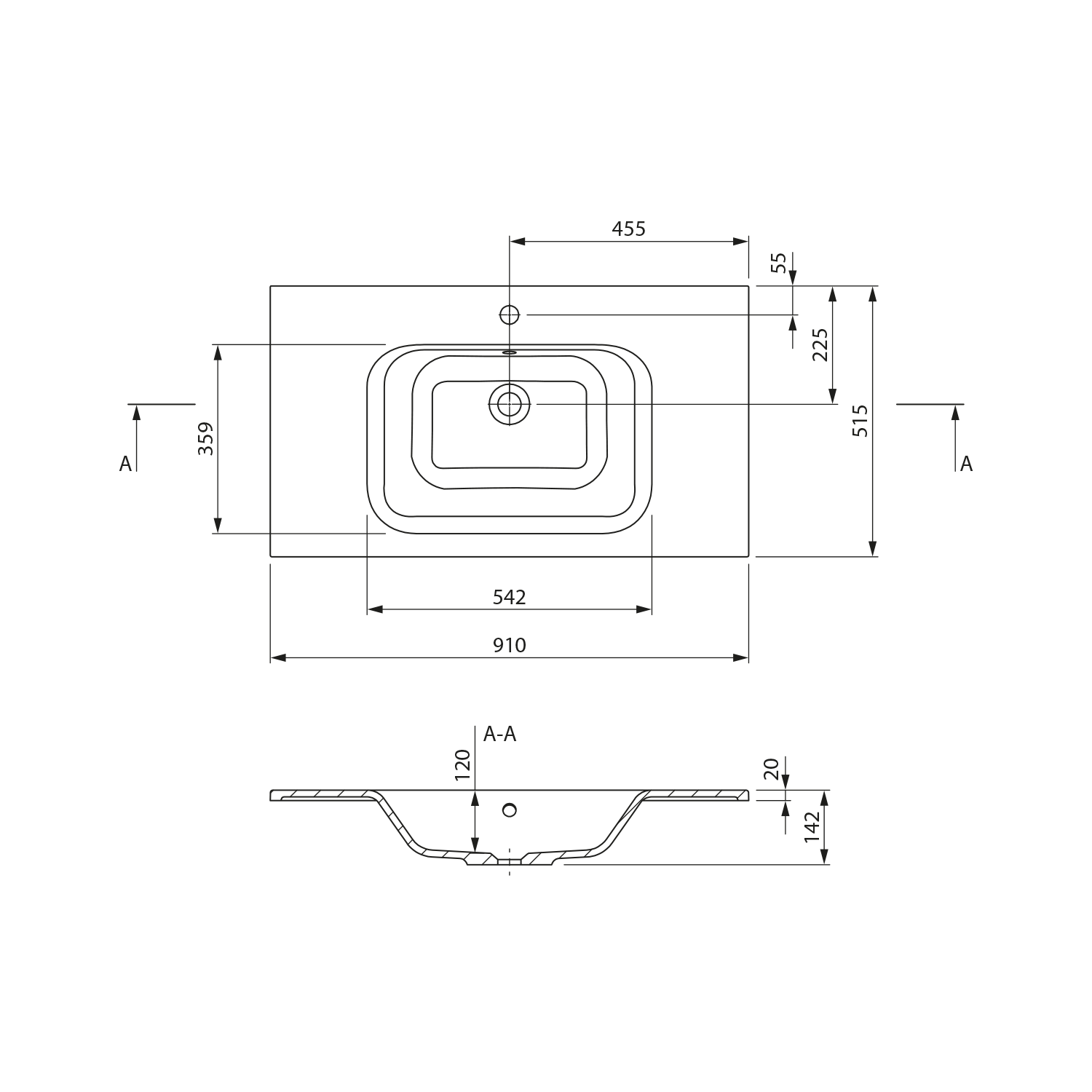 ARECA Cast Marble Washbasin 91x51,5cm, white