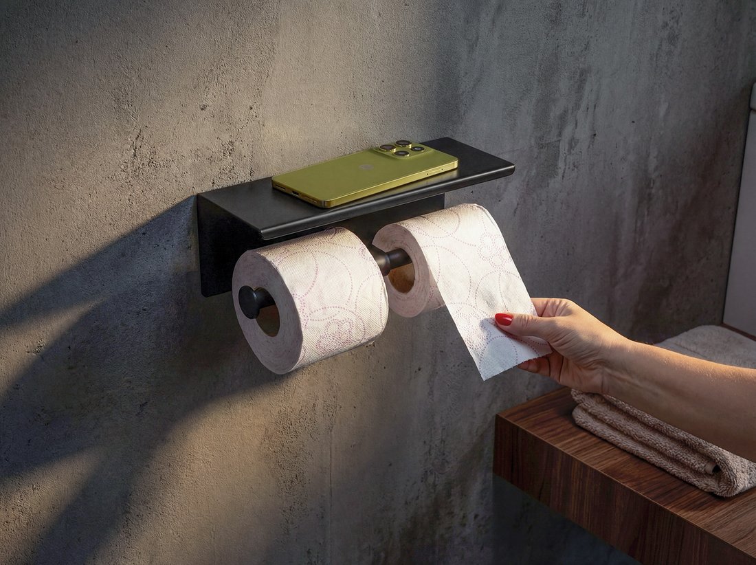 Toilet paper holder with shelf, black matt