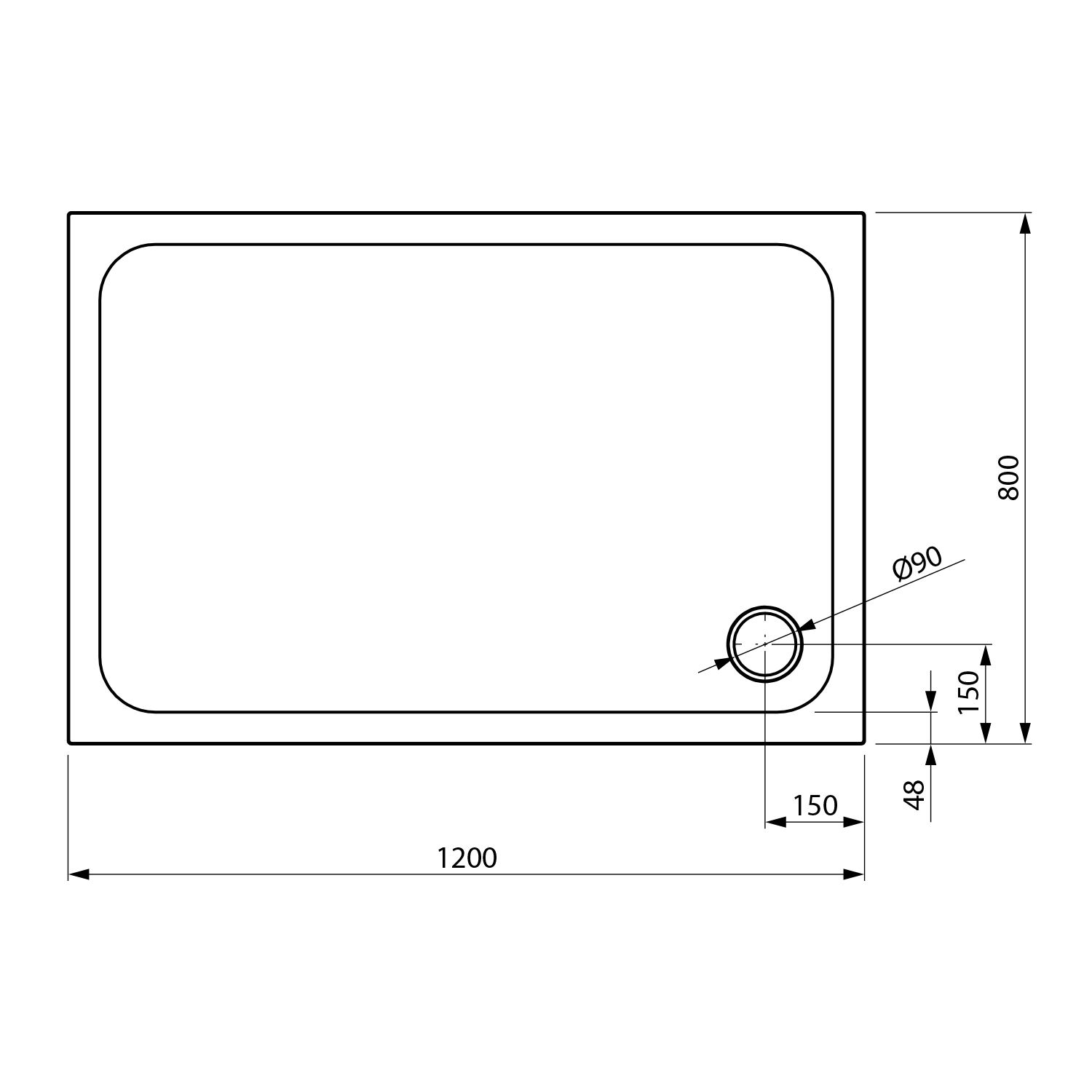 ELZA cast marble shower tray, rectangle 120x80cm, white