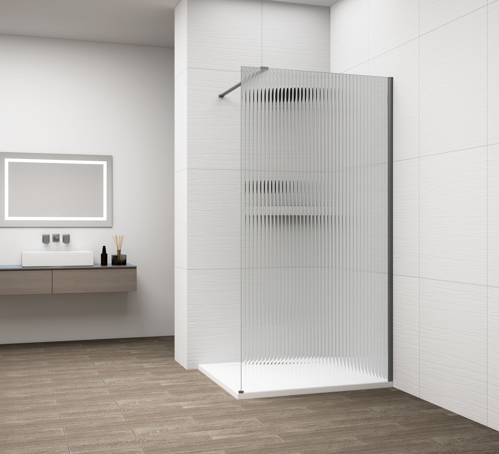 ESCA GUN METAL One-piece shower glass panel, wall-mount, glass Flute, 1300 mm