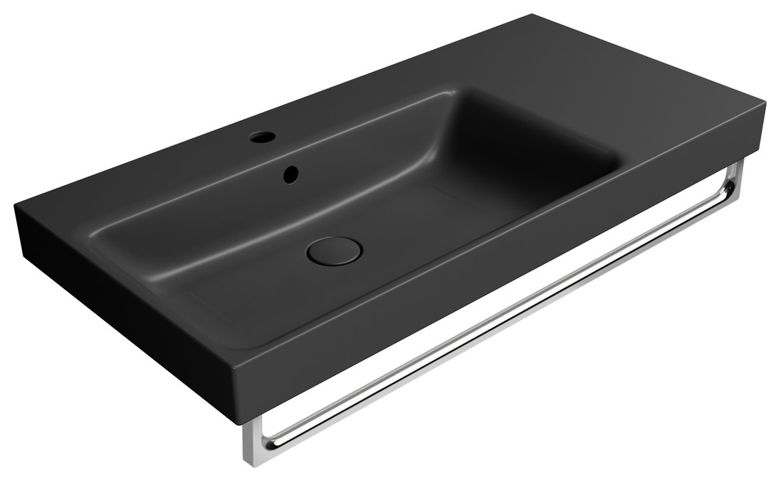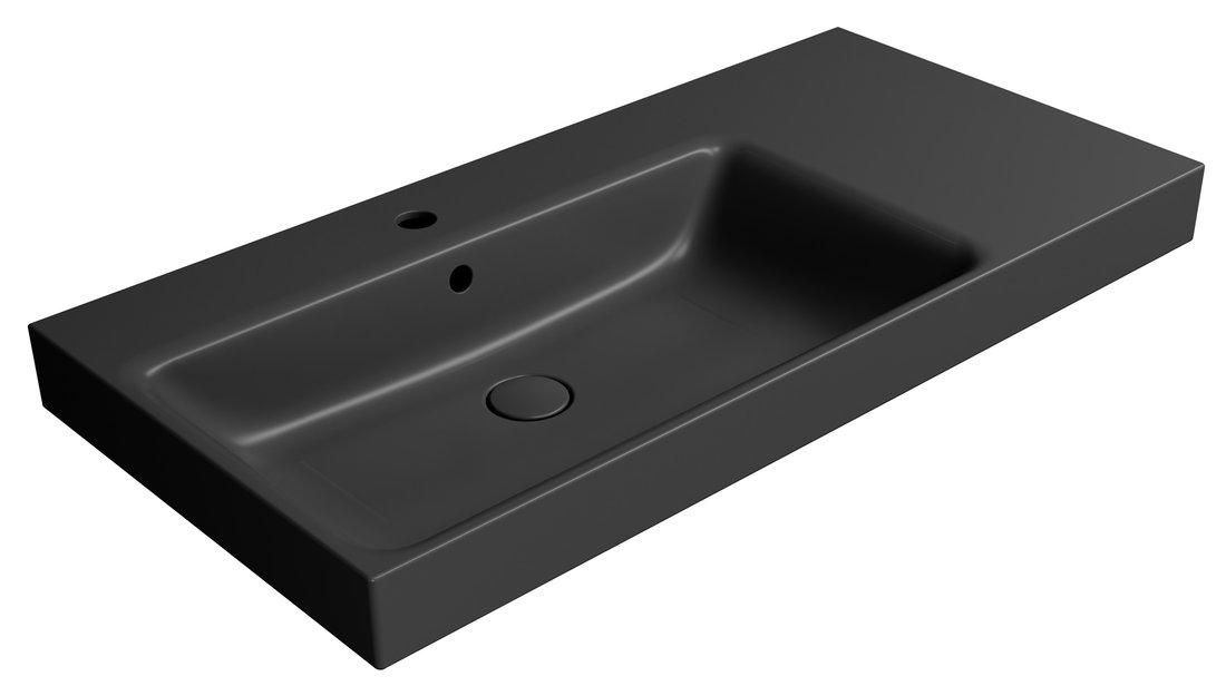 NUBES ceramic washbasin 100x50cm, shelf right, black matt