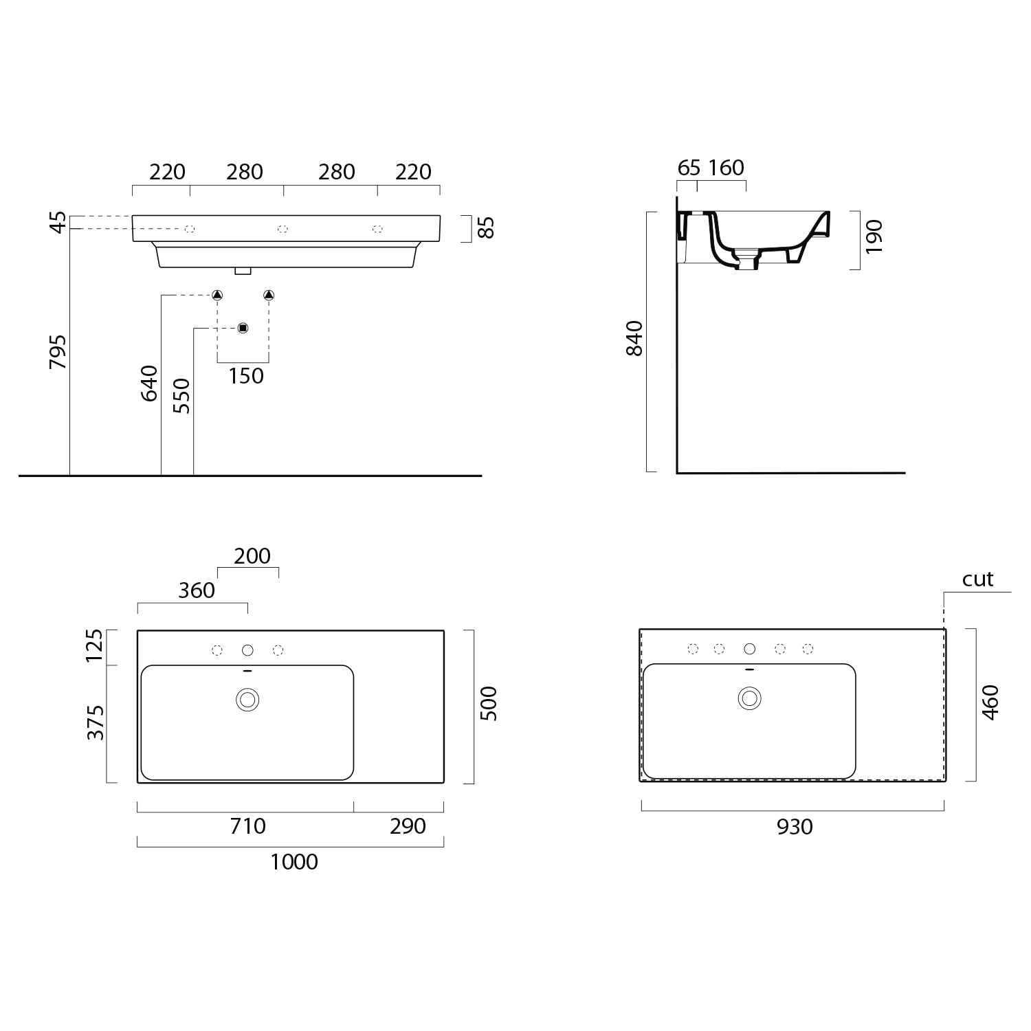 NUBES ceramic washbasin 100x50cm, shelf right, white matt