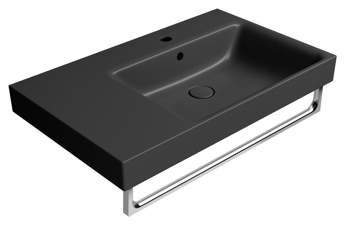 NUBES ceramic washbasin 80x50cm, shelf left, black matt