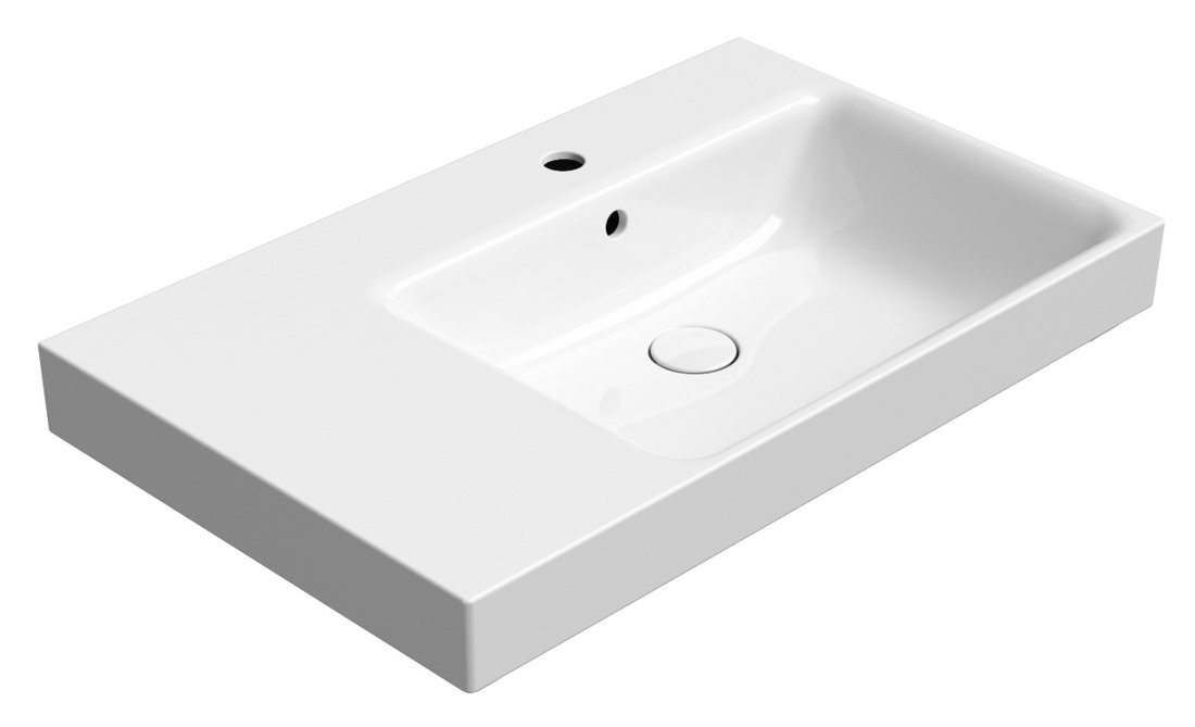 NUBES ceramic washbasin 80x50cm, shelf left, white ExtraGlaze