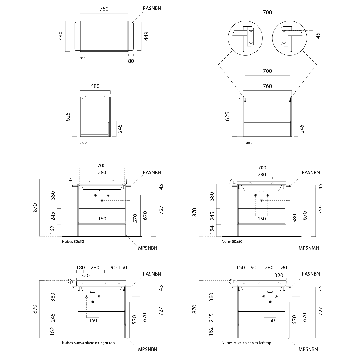 NUBES ceramic washbasin 80x50cm, shelf right, white matt