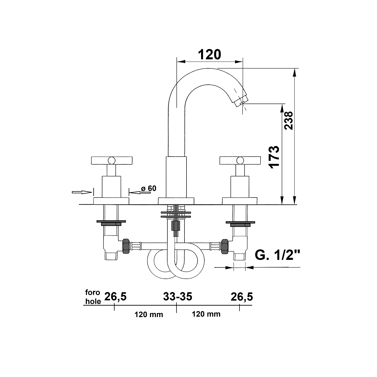 AXIA 3-Hole Basin Tap, chrome
