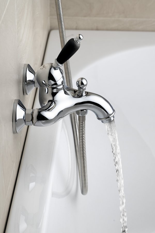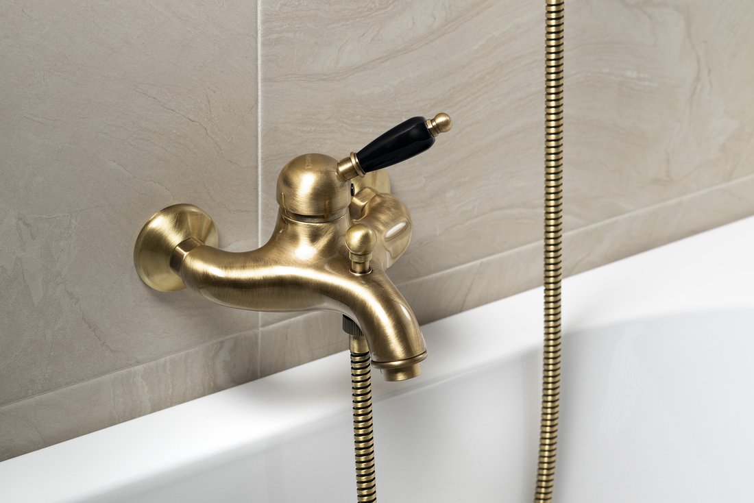 KIRKÉ BLACK Wall-Mounted Mixer Tap, black lever, bronze