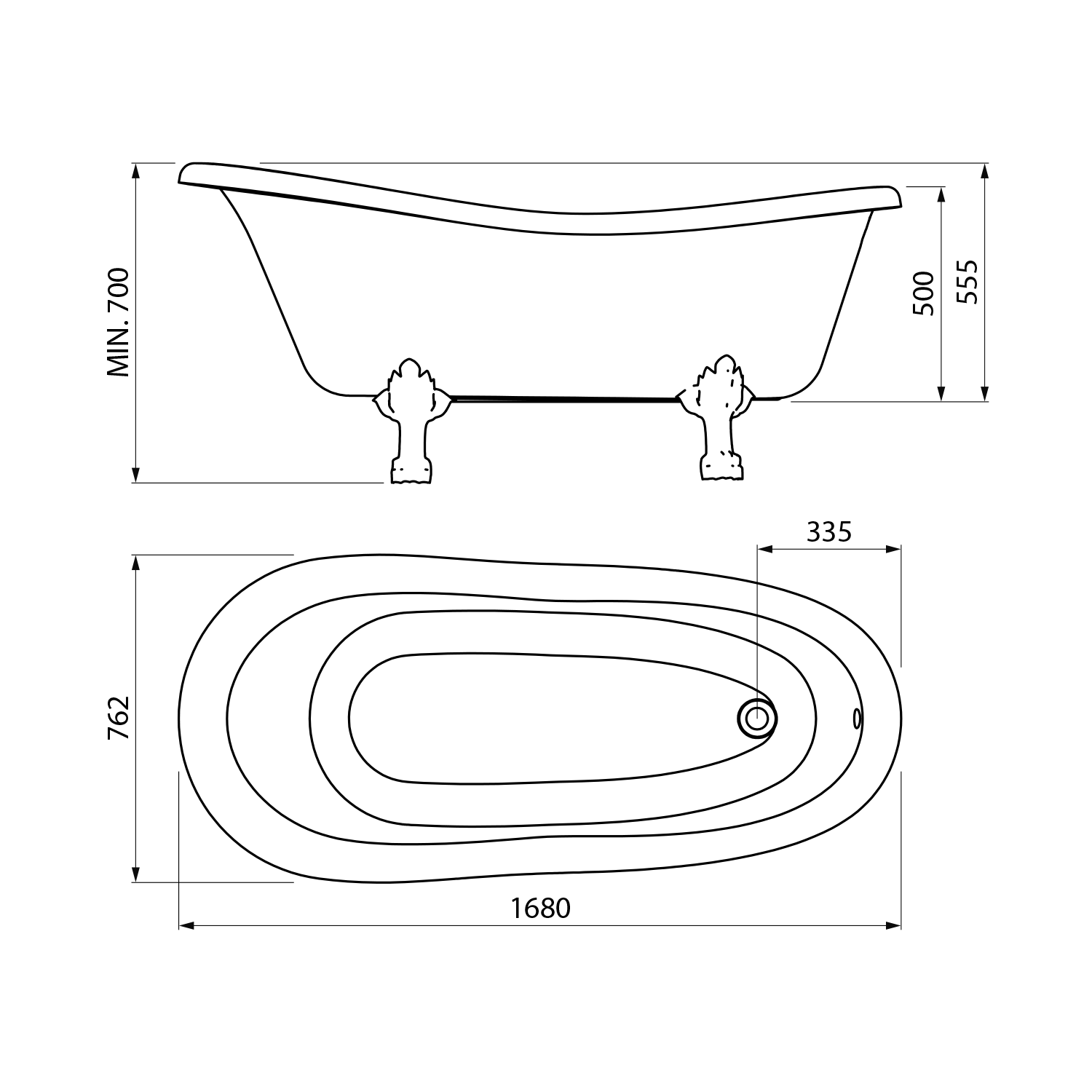 RETRO freestanding bathtub 168x76,2x70cm, white, Bronze legs