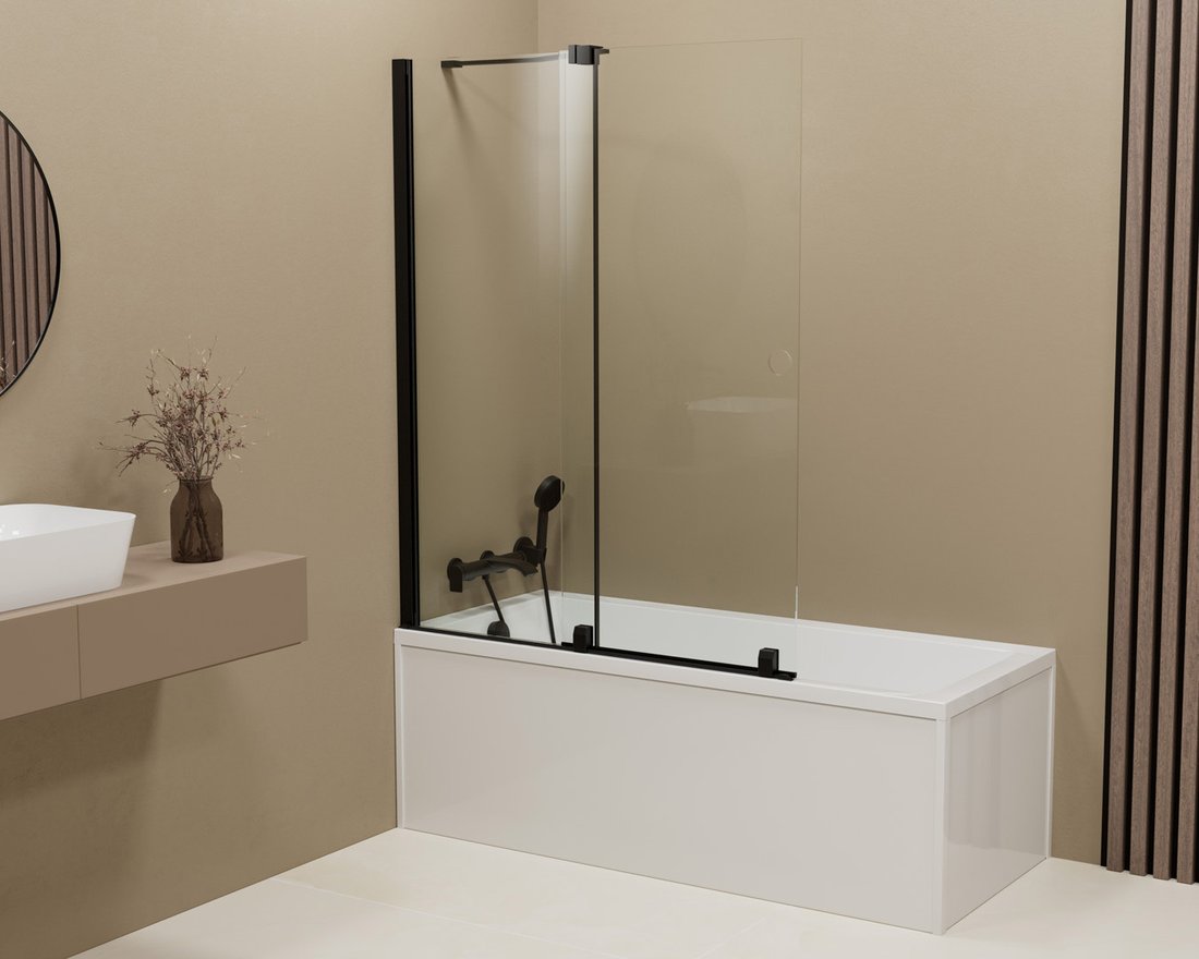 ROLLS BLACK bath Screen 1200x1500mm, clear glass