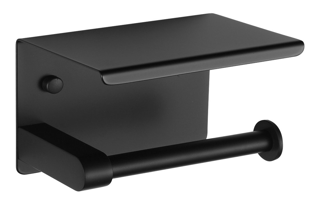 Toilet paper holder with shelf, black matt