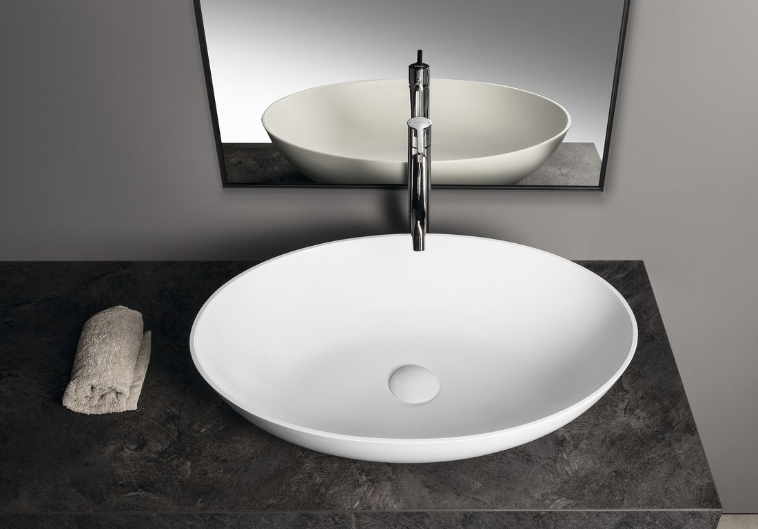 BANERA OVAL umywalka kompozytowa nablatowa, 60x40cm, biały mat