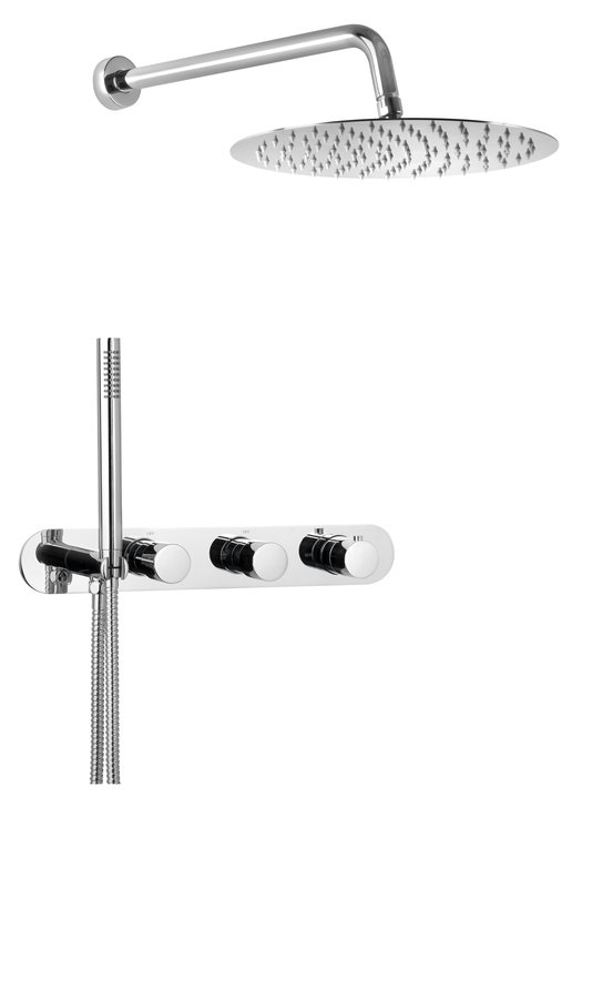 Zestaw prysznicowy z baterią termostatyczną z uchwytem rączki prysznicowej, 2 funkcyjny, deszczownia okrągła, chrom