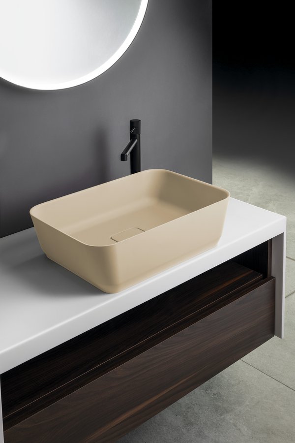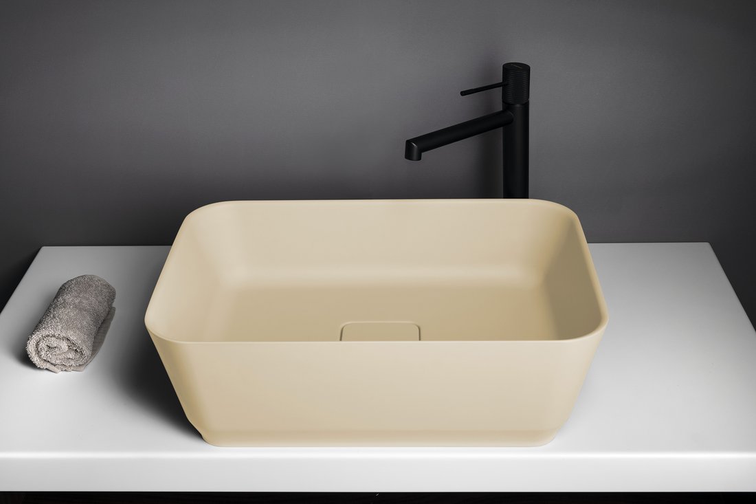 BANERA SQUARE umývadlo na dosku, liaty mramor, 50x36cm, béžová mat