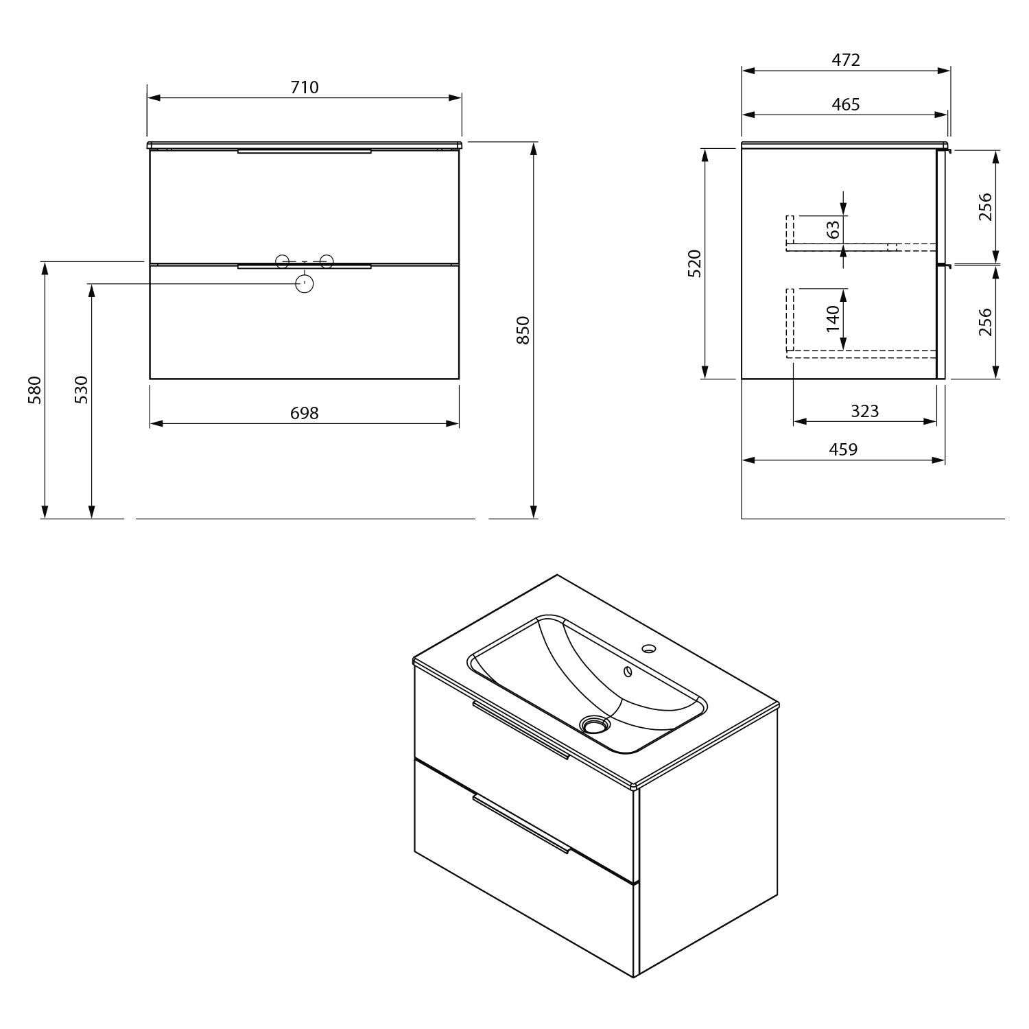 CIRASA STRIP umývadlová skrinka 69,8x52x46cm, agila