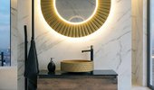 PRIDE STRIP guľaté zrkadlo s LED osvetlením v ráme, priemer 90cm, bronz