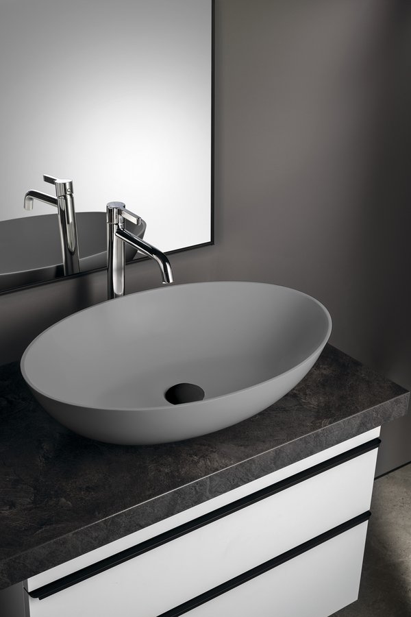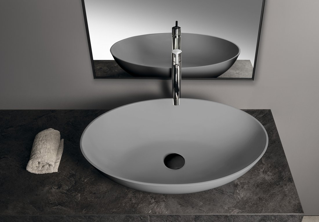 BANERA OVAL umývadlo na dosku, liaty mramor, 60x40cm, šedá mat