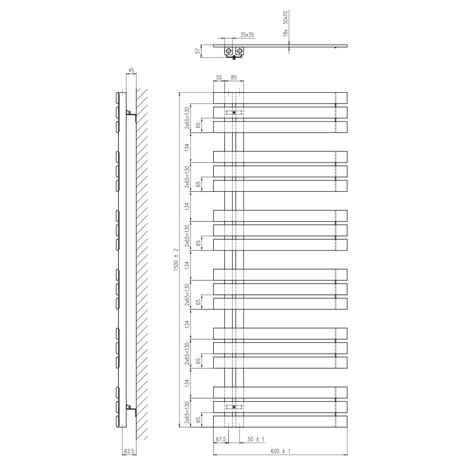 SILVANA vykurovacie teleso 600x1500mm, siena mat