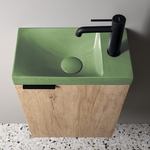 Zabudnite na bielu a rozsvieťte toaletu krásnym polomatným umývadlom napríklad v zelenej alebo žltej farbe! Celkový dojem z interiéru môžete podčiarknuť správnym výberom farby skrinky. Viac informácií o týchto výrobkoch nájdete TU .